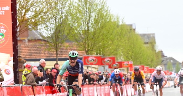 Le 31 mars, les routes normandes sont à l'honneur. Pierre Gautherat (Decathlon CMA CGM, 23 ans) remporte la 87e édition de Paris-Camembert Le Petit à Livarot, au sprint, dans une échappée 100 % française. Il devance Alexandre Delettre (TotalEnergies) et Maxime Vézié (CIC Pro Cycling) — podium tricolore intégral. Le 3 avril, en Bretagne, l'Alsacien pensait signer le doublé sur la Classic Velox Adélie de Vitré (174 km). Le Français de la Decathlon CMA CGM a d'abord franchi la ligne en tête avant d'être déclassé pour un changement de ligne au sprint — la victoire officielle revient à l'Espagnol Marc Brustenga, Louis Hardouin (Van Rysel Roubaix) récupère lui le podium.